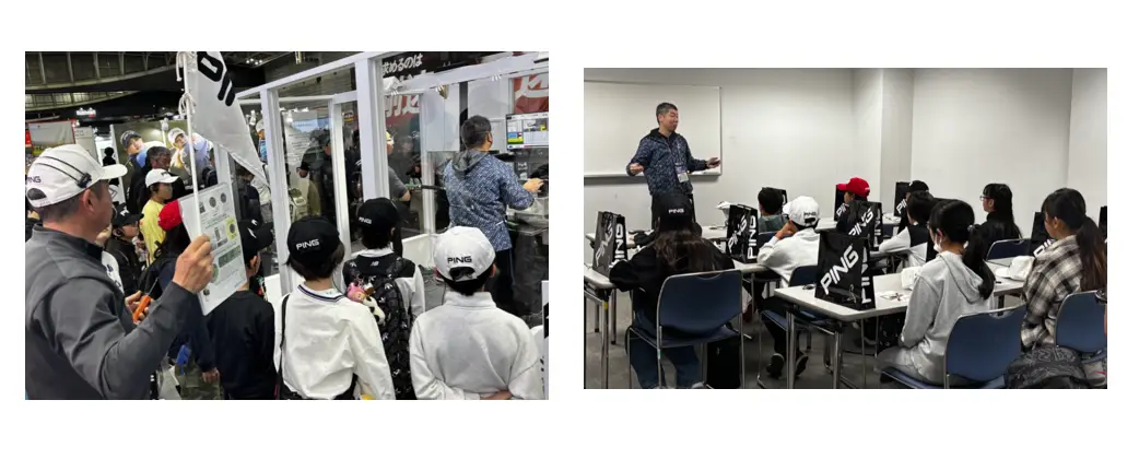 そして、ゴルフに興味のあるジュニアに向けて、ゴルフ業界やPINGを知ってもらう特別ツアーとして、7日のみの限定でカーステンスタッフ米田貴プロと一緒に巡るジュニアツアーを開催しました。参加したジュニアたちの真剣に学ぶまなざしが印象的で、このイベントをきっかけに、ゴルフやPINGへの興味をさらに深めていただけていれば嬉しく思います。
