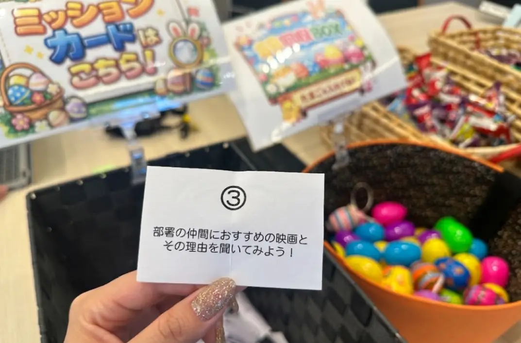 レクチームが企画したイベントは「エッグハント」。オフィス内に隠された卵を探し出し、交換所に持っていくと景品と交換できる仕組みで、宝探しのような感覚で楽しめるイベントとなりました。