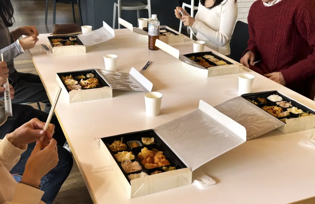 毎月の給料日前日には、会社がランチを用意し、社員は無料で食事をとることができます。